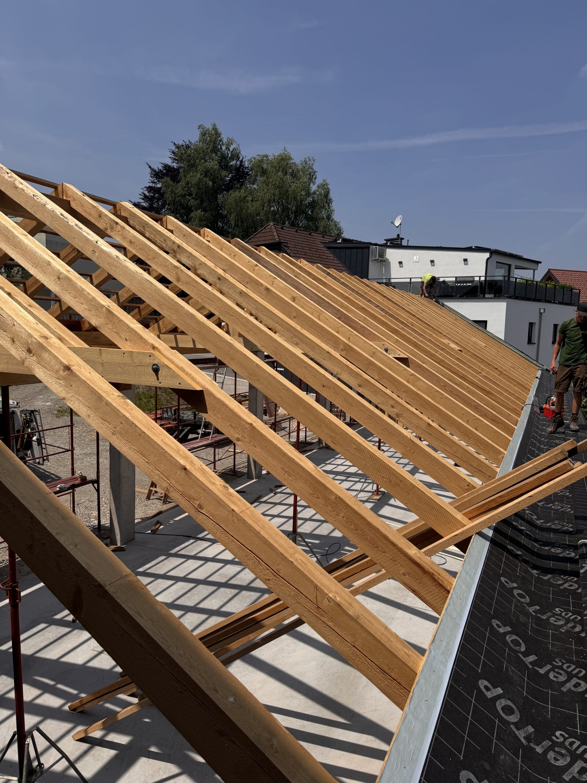 Im Rahmen einer Dachsanierung können verschiedene Maßnahmen durchgeführt werden, wie die Erneuerung der Dacheindeckung, die Abdichtung von Undichtigkeiten, die Verlegung von Dämmmaterialien oder Aufsparrendämmungen, sowie Dachgauben. Auch eine Modernisierung des Dachgeschosses und eine damit einhergehende Verbesserung der Tragfähigkeit für PV-Anlagen, sowie dieEnergieeffizienz des Gebäudes kann Teil einer Dachsanierung sein.